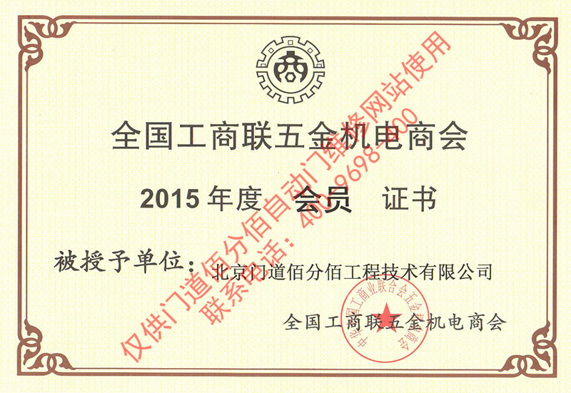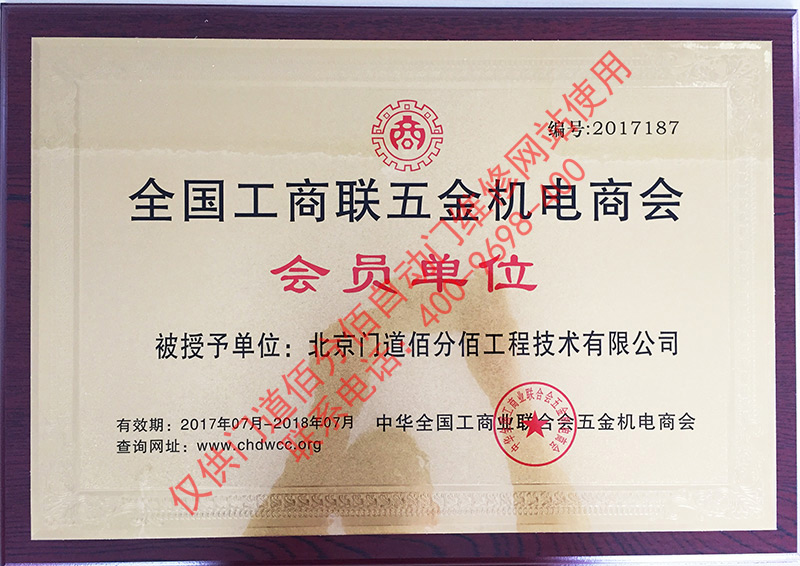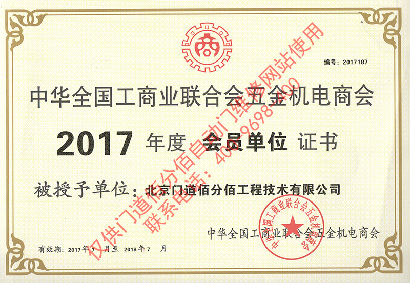 2017年門道佰分佰工商聯(lián)會(huì)員單位證書
