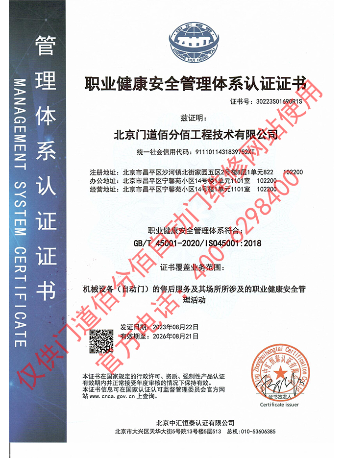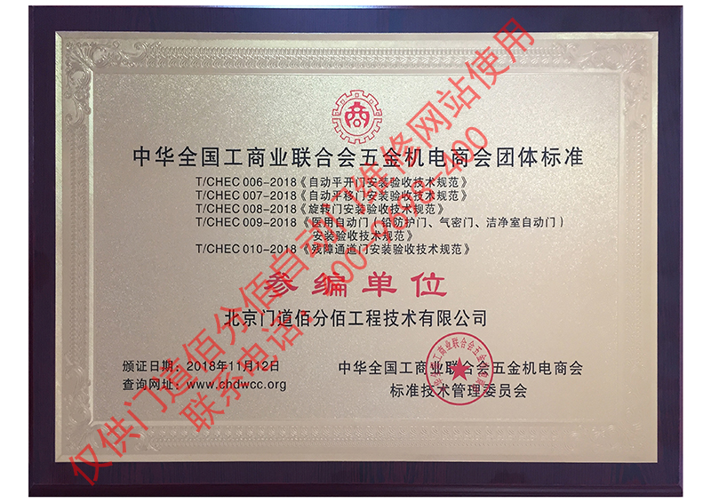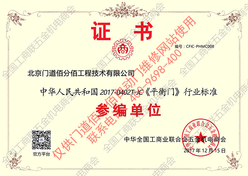 平衡門行業(yè)標(biāo)準(zhǔn)證書